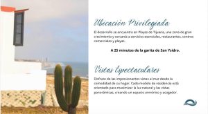 El desarrollo se encuentra en Playas de Tijuana, una zona de gran crecimiento y cercanía a servicios esenciales, restaurantes, centros comerciales y playas.